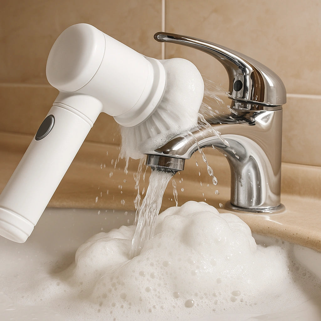 Desde la cocina hasta el baño, ventanas, grifos o llantas del auto, este cepillo se adapta a cada tarea con resultados profesionales en segundos.